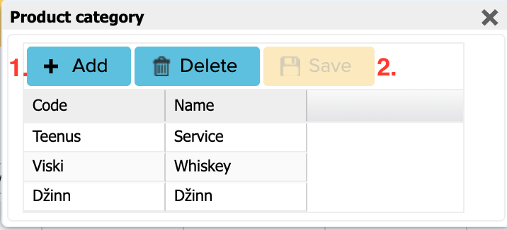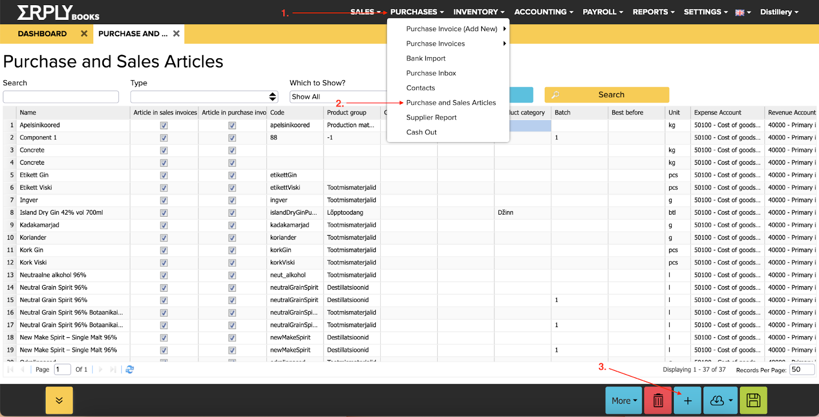 When the “Purchase-Sales Articles” module is open, click the “+” button in the black menu bar at the bottom.
