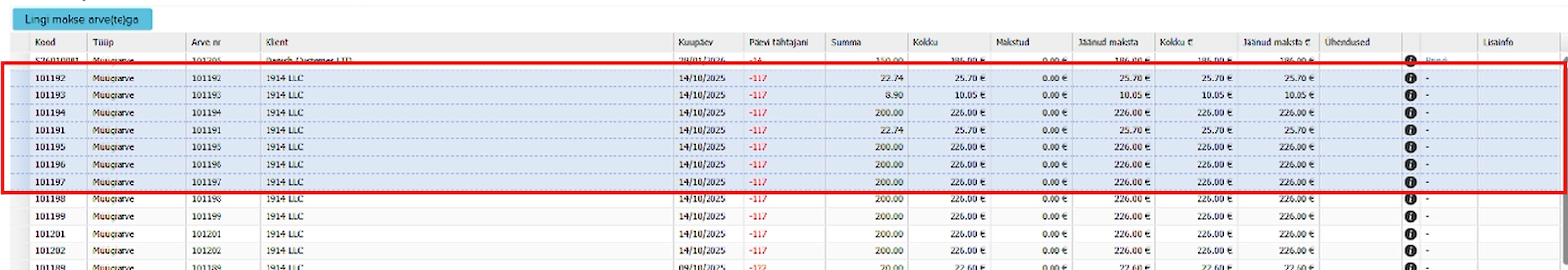 For example, you search for relevant invoices and select 7 invoices from the list. However, for some reason, you canceled your selection and now need to search for the 7 invoices again.
