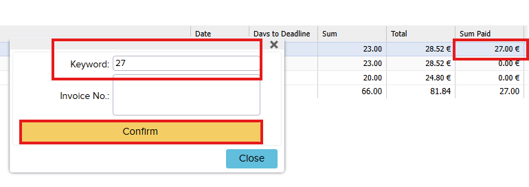 If you need to find an invoice by a specific keyword (e.g., customer name, project name, description, amount), you can use the same principle for keyword-based search: