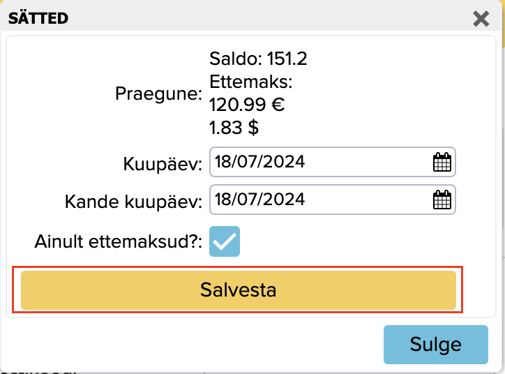 Kui klõpsate “Salvesta”, ühendab süsteem ettemaksed: