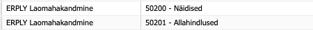 Juhul, kui Sul on erinevad mahakandmiste põhjused ja soovid neid näha eraldi kontodel, siis ava “Sätted” > “ERPLY lao ja kassa sätted” > “Lisa reeglid kontodele”. Otsi üles read, millel on tüübiks “ERPLY laomahakandmine” ja määra neile kontod. Näiteks saad määrata eraldi kontod näidistele, allahindlustele, katkistele kaupadele, laojääkidele.
