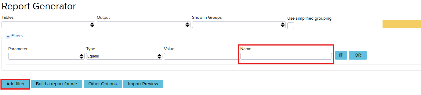 In addition, filterName can be used directly in the Report Generator, not just in notification management. To do this, open the Report Generator (Reports → Report Generator) and click the button: Other options.
