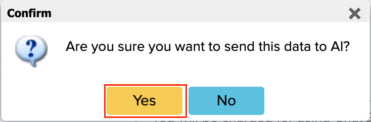 If you click “No”, the confirmation window will close, and you will return to the same view that was displayed before clicking “Send to AI”.