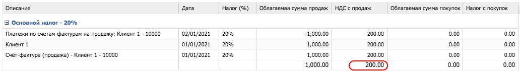 В банковском импорте для предоплат также отображается налоговая ставка, назначенная для этого контакта в его карточке, и начисляется указанный в карточке клиента налог с оборота.
